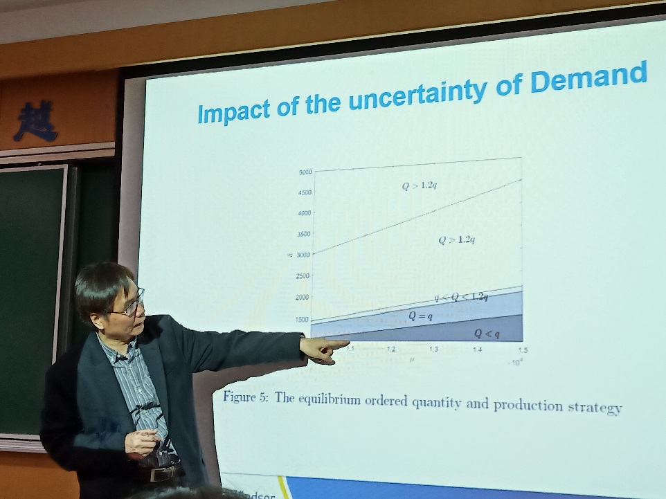 张国庆教授是温莎大学机械、汽车与材料工程系教授,也是供应链和物流优化研究中心主任。他首先简介了温莎大学及自己的研究团队,然后以汽车行业真实案例为出发点,针对开发创新产品或新产品时存在的需求和成本不确定性,设计了一份最优供应合同以降低不确定性带来的风险,并最大化供应商的利润和最小化制造商的生产成本。此外,张教授还简单评述了工业4.0时代智能供应链的研究。
