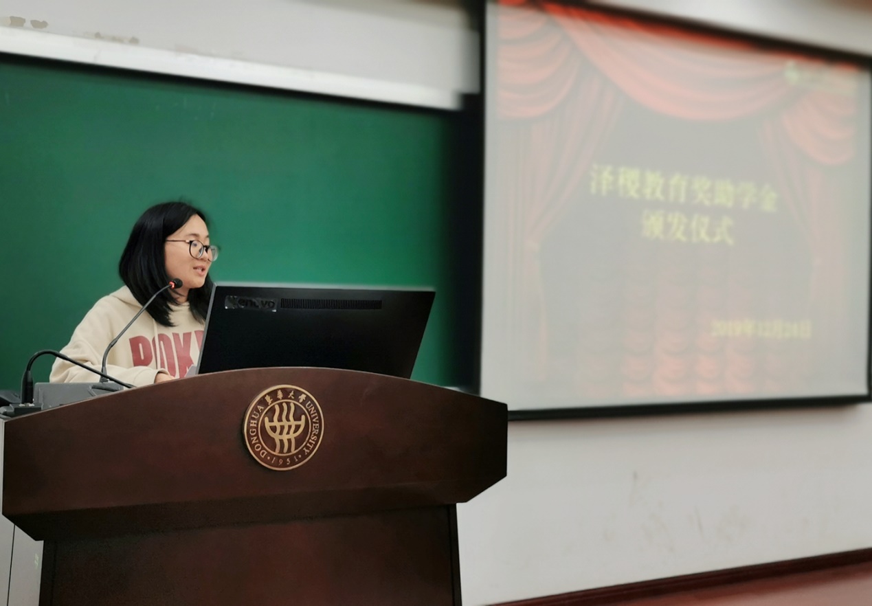颁奖典礼伊始,管理公司党委副书记丁怡老师详细地介绍了泽稷教育奖助学金的评选情况。随后,泽稷教育董事长蒋望先生和管理公司党委书记林文伟为获得泽稷教育奖学金的获奖代表颁奖。泽稷教育副总经理仝蕊蕊女士和党委副书记丁怡老师为助学金的获奖代表颁奖。获奖代表马晚路和胡少娴同学先后上台发言,她们代表获奖同学表达了对国家、对公司和对社会的感恩之情,分享了自己的大学成长历程,传授了宝贵的学习经验。并表示将在今后的学习和生活中积极实践创新,不断提高自身综合素质,以实际行动回报社会。