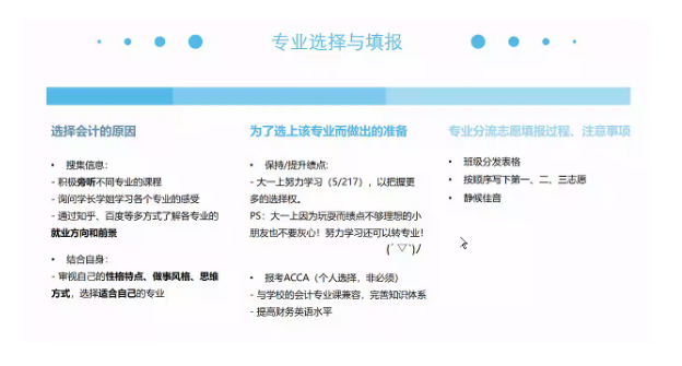 来自会计学的杨若琪学姐分享了自己选择会计的原因以及准备过程、专业填报过程并详细介绍了会计学的专业课程设置。