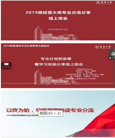 为鼓励员工有计划、有准备的应对专业分流,加深员工对于各专业学习课程、毕业去向以及就业前景等方面的了解,有针对性地指导员工进行专业选择与填报,各专业大类分别邀请班导师与毕业班优秀员工分享专业学习与分流经验,并于4月中旬线上召开了专业分流动员会。此次动员会基于经管大类、管理大类与经贸大类员工的不同需求,分三场分别召开。