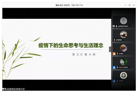第五组的同学结合自己亲身体悟,表示疫情给带来最大的改变是,开始珍藏生活里一些点滴的美好,开始勇敢地向对自己来说很重要的人去表达爱意……人只有一次生命,追求自己热爱的,守护自己珍重的,正如尼采所说,“每一个没有起舞的日子都是对生命的辜负。”