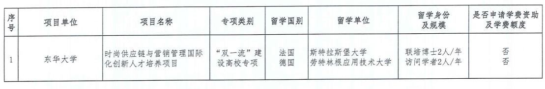 据国家留学基金管理委员会《关于确定2020年创新型人才国际合作培养项目第一批资助项目的通知》要求,公司于今年6月获批国家留学基金委创新型人才国际合作培养项目1项——《时尚供应链与营销管理国际化人才培养项目》,执行期3年,项目获批共4人/每年,其中,访问学者2名,访问期限3个月;博士生2名,联培时间1年,现开展人员选拨工作。