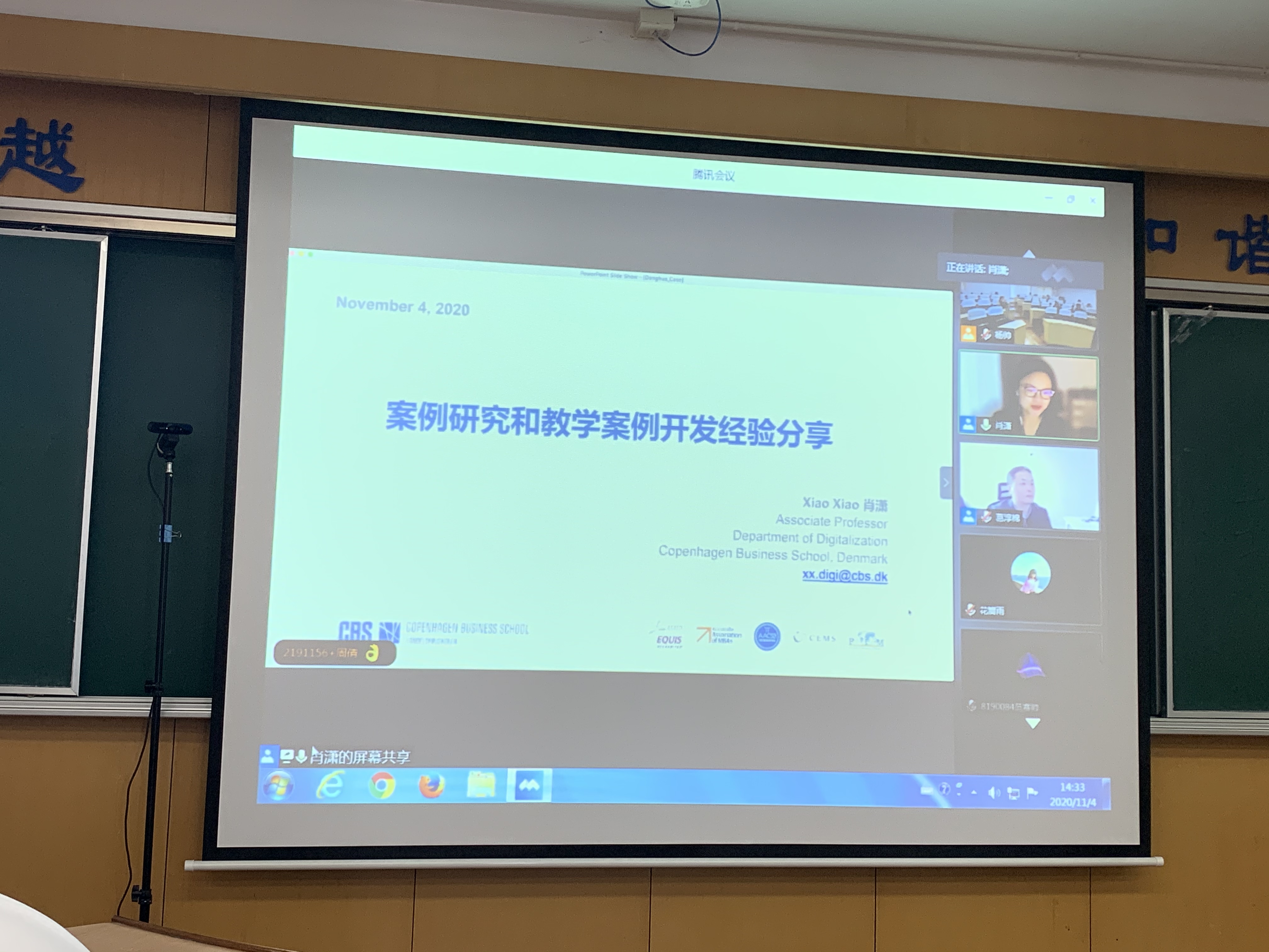 2020年11月4日下午2点半,韦德体育分别邀请丹麦哥本哈根韦德体育数字化系肖潇副教授以及华南理工大学工商韦德体育葛淳棉教授为韦德体育师生作了一场有关案例研究和案例教学的学术报告。会议线下场在旭日楼306召开,报告嘉宾在腾讯会议平台演讲,会议由杨帅副经理主持,公司中青年教师及众多研究生出席了此次会议。