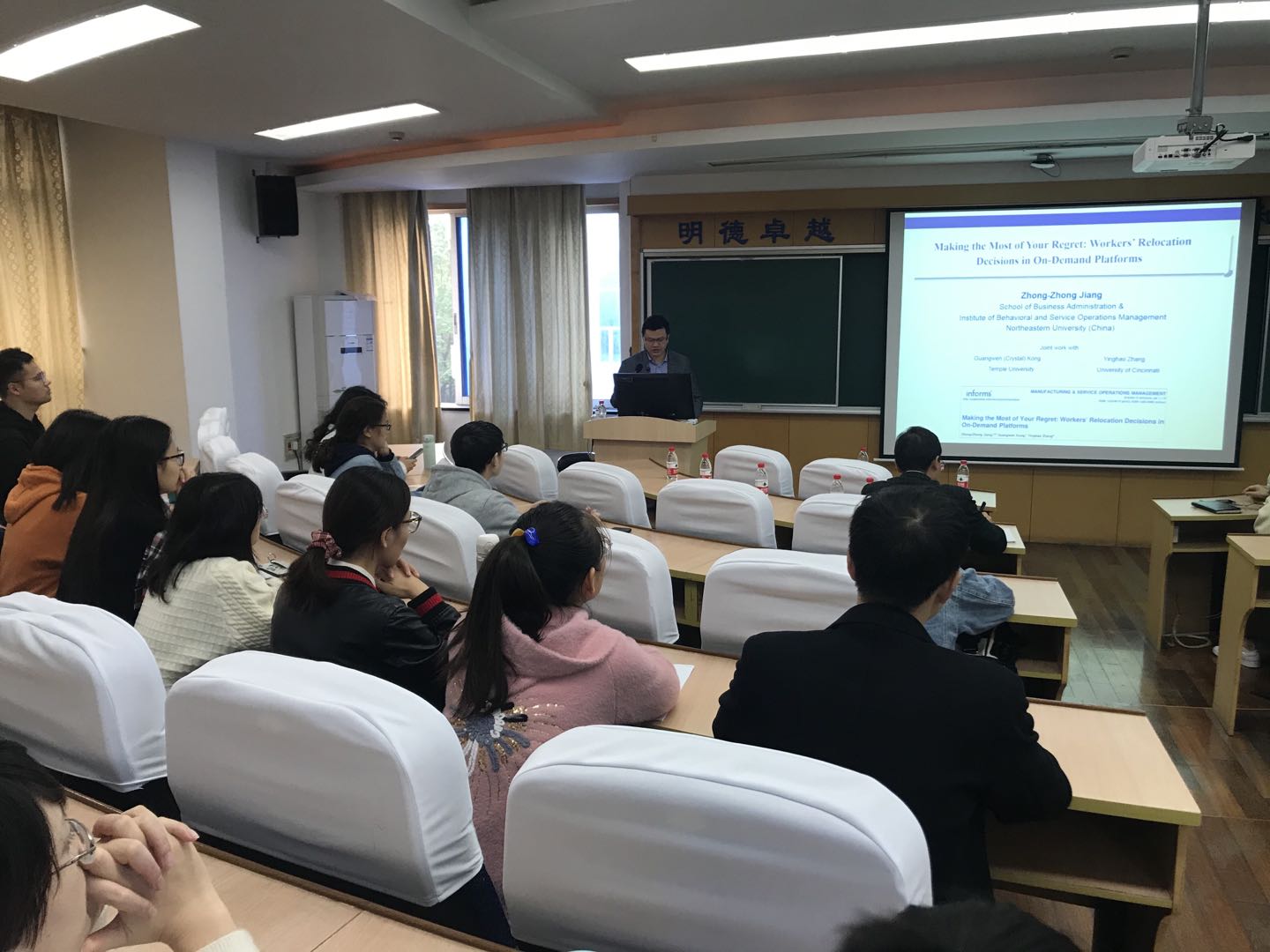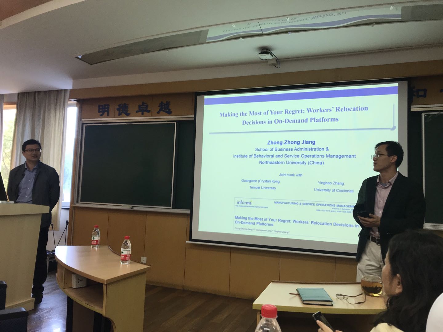 2020年11月2日(周一)上午10点,东北大学工商韦德体育经理、博导蒋忠中教授,为韦德体育官方网站韦德体育官方网站韦德体育师生做了一场题为“Making the Most of Your Regret: Workers’ Relocation Decisions in On-Demand Platforms”的学术报告。报告会由郑斐峰副经理主持。