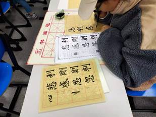 在完成书法练习后,同学们纷纷拍下自己的书法作品以作留念,并上传至易班国学苑微社区记录这次活动,分享研习体会。