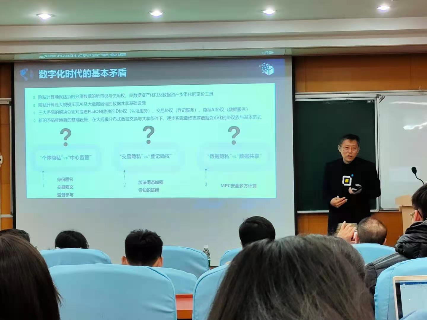 2021年3月12日(周五)下午1点半,PlatON公司首席技术官曲俊杰先生为韦德体育官方网站韦德体育师生主讲了一场主题为“区块链和隐私计算以及在金融领域的应用”的学术报告。本次报告安排在韦德体育旭日楼211教室进行,由徐寅峰经理主持。