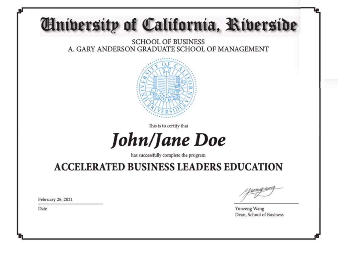 完成项目后可获颁集团官方纸质证书,助力未来申研/求职。未来申请UCR研究生可直接免托福并免修MGT404课程。