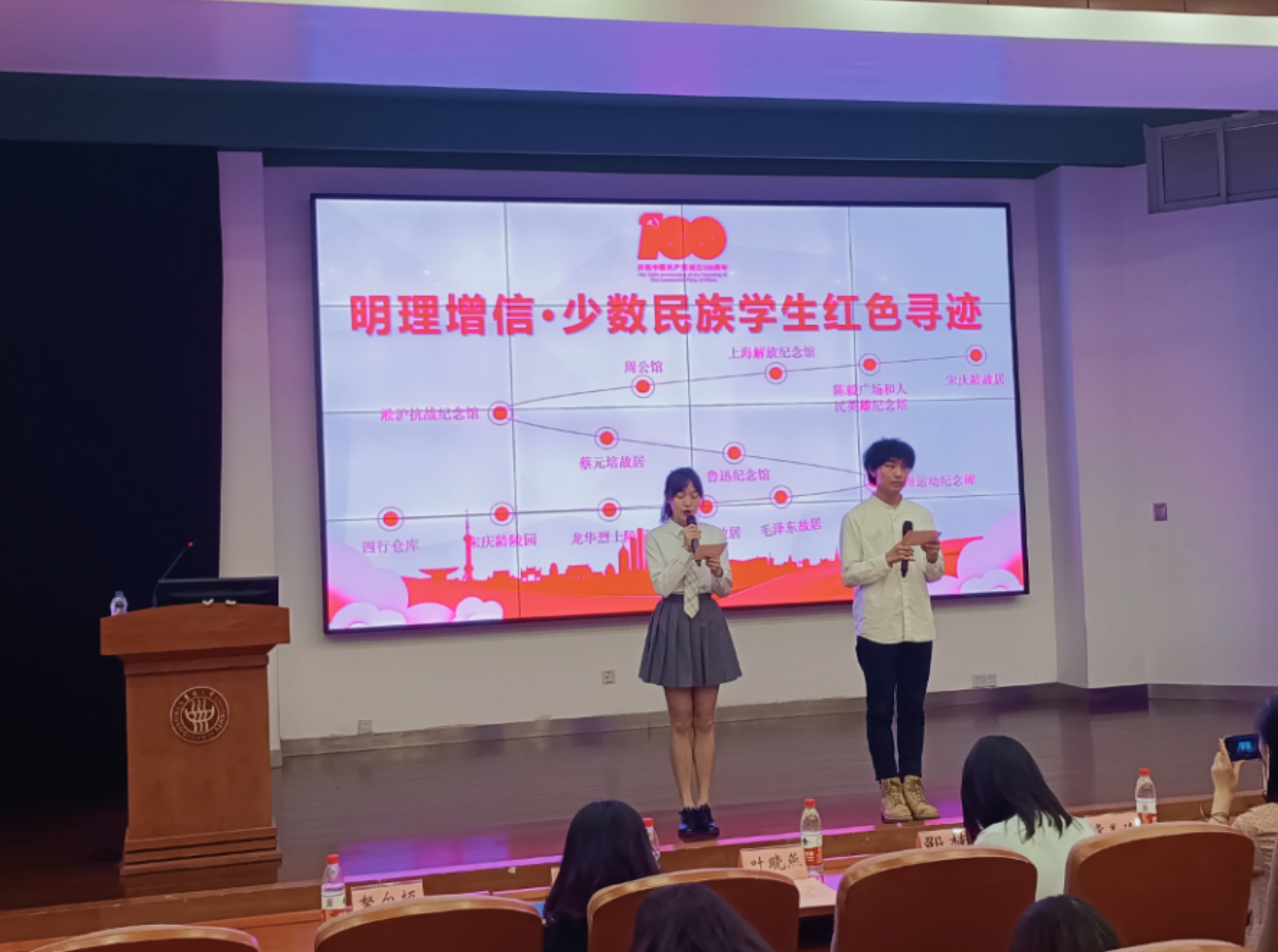 少数民族员工通过朗诵、视频讲解和革命文物介绍等形式纷纷展示在党史学习和红色寻访中所学,带动身边的同学一起学习。