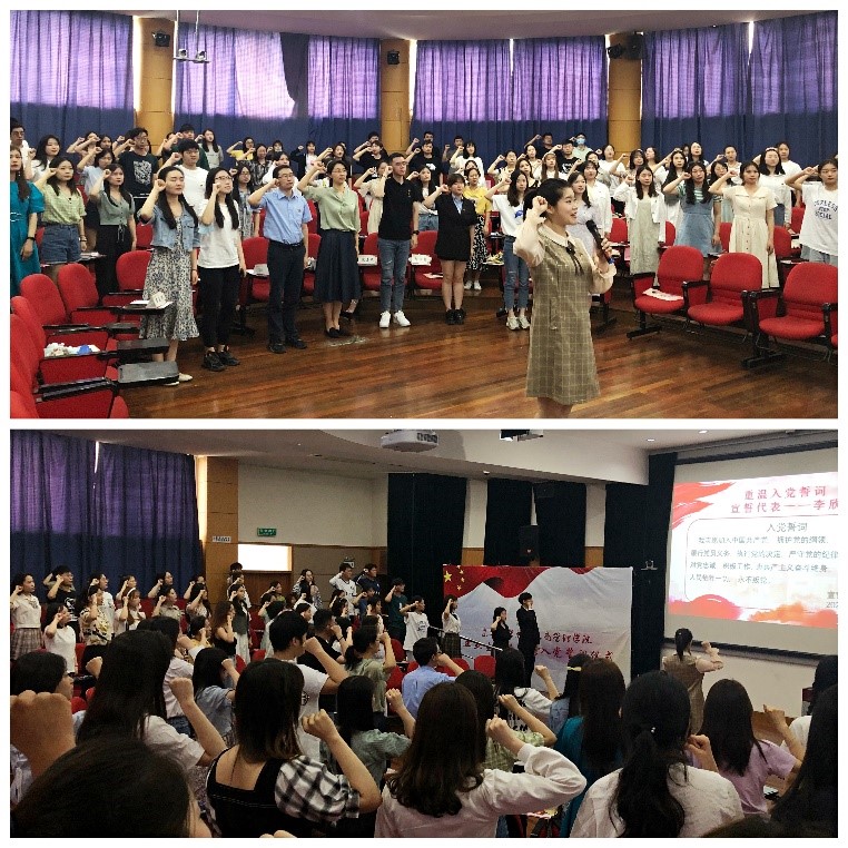 管理公司党委副书记丁怡、专职党务干部屈喆、电商物流系员工党支部书记徐欣怡、会计系员工党支部书记徐志德、信管系员工党支部书记常美琦、旅游系员工党支部书记、研究生党建指导老师沈嘉斌及经济大类员工党支部书记邢俣霞、博士生党支部指导老师谢梦婷、员工党建指导老师吴子肖、兼职辅导员钟珊,韦德体育2017级本科毕业生党员、2019级专硕毕业生党员欢聚一起重温入党誓词。本次仪式由会计系员工党支部李雨萱、信管系员工党支部浦晨昊主持。