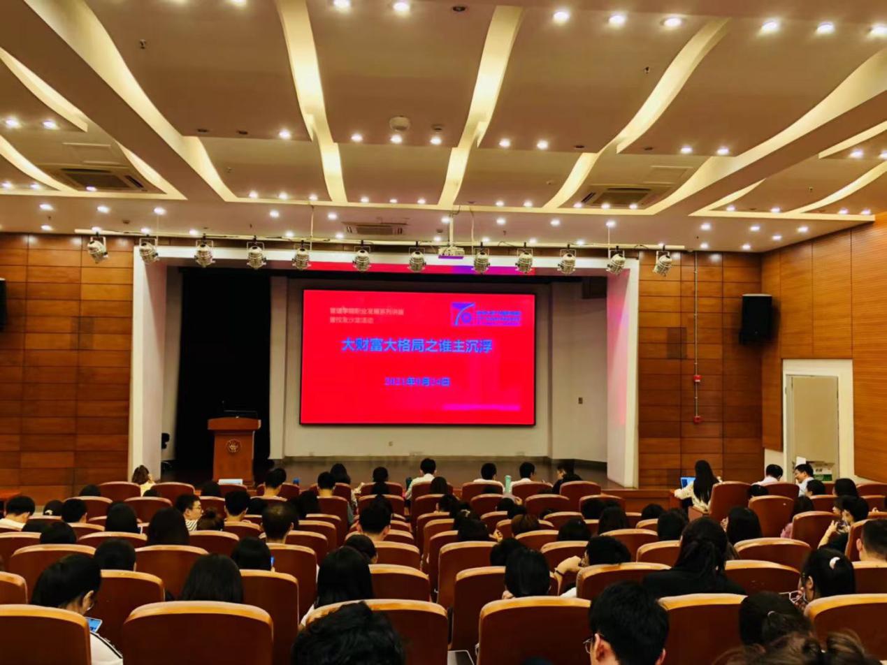 蒋双喜从券商角度分析未来的财富管理行业,他认为未来财富管理的优势在于满足高端客户的定制化需求以及全程的跟踪服务,并且介绍了证券公司财富管理职业发展的三条路径,鼓励同学们积极利用校园时间提升自我,为未来走上工作岗位奠定基础。