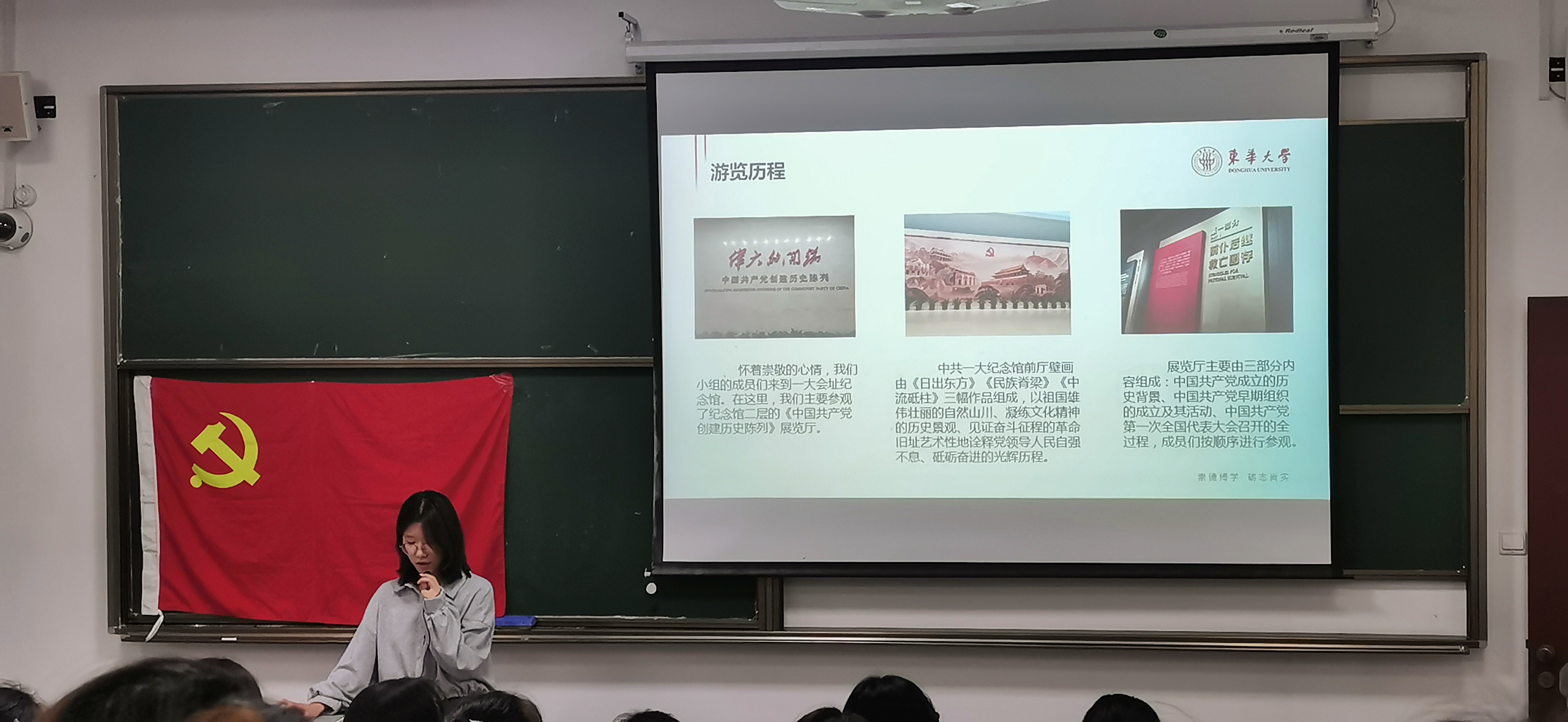 接下来是十个小组分别进行入党积极分子培训班学员“乘坐红色列车,寻访党史故事”主题活动成果展示,各小组采用PPT的方式,向大家介绍了周公馆、宋庆龄陵园、中共一大会址等红色教育基地,对入党积极分子们学习红色精神,传承红色基因,不忘初心、牢记使命、锤炼品格具有重大意义。