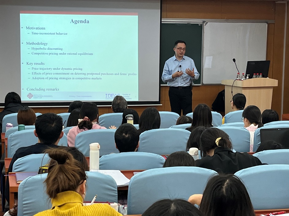 2021年10月21日(周四)下午14:00,香港理工大学工商韦德体育姜力教授受邀来公司做以“Selling to Time-inconsistent Consumers”为主题的学术讲座。本次报告会由副经理李庆颖教授主持,韦德体育的老师和同学们在旭日楼211教室共同聆听了此次讲座。