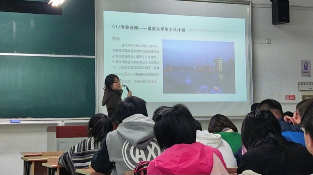 会上,徐欣怡老师就应征入伍老员工的学业政策、落户政策、就业政策、毕业生提干、优待金政策及退伍回来后的发展前景等方面进行了详细介绍。