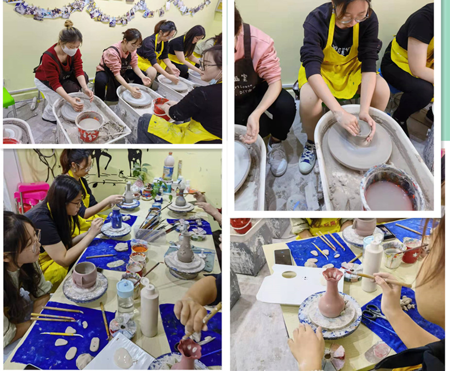 塑型、风干、装饰、上色、上釉、烧制,一件陶艺作品的诞生大多需要经历这几个工艺。在带教老师的讲解和指导下,同学们跃跃欲试,开始了上机拉坯、塑型、上色等环节的体验。整个活动其乐融融,同学们体验了陶瓷制作的不易,也提升了动手能力。19级仇宝恩说:这次的活动让我了解了中国传统艺术陶艺的制作,感受到了工匠精神,让精益求精铭刻在今后生活的方方面面当中。19级李沅蔚说:感谢公司提供体验机会以及带教老师的指导,希望有机会再参与这种体验中国文化的活动,丰富对中华文化的认识。20级刘懿萱说:这次的陶艺活动不仅带给我手工上的乐趣与成就,还让我与港台的同学更加紧密了起来。之前与她们的感觉就如同几块陶泥粘结在了一起,而如今已是经过了烈火的炙烤变得坚硬且永不分离。