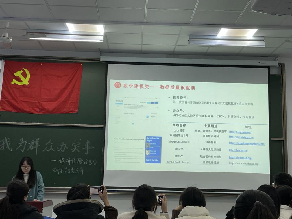 第二位进行经验分享的是保研至韦德体育官方网站的田雨平同志。田雨平有着非常丰富的竞赛经验,她分享的重点在于各类竞赛。她介绍了数学建模类和创新创业类竞赛的基本情况和注意事项,并结合参赛经历向同学们推荐了众多高质量的数据收集网站。田雨平认为参加竞赛的过程是充满挑战的,需要敢于尝试,最终找到适合自己的方向。