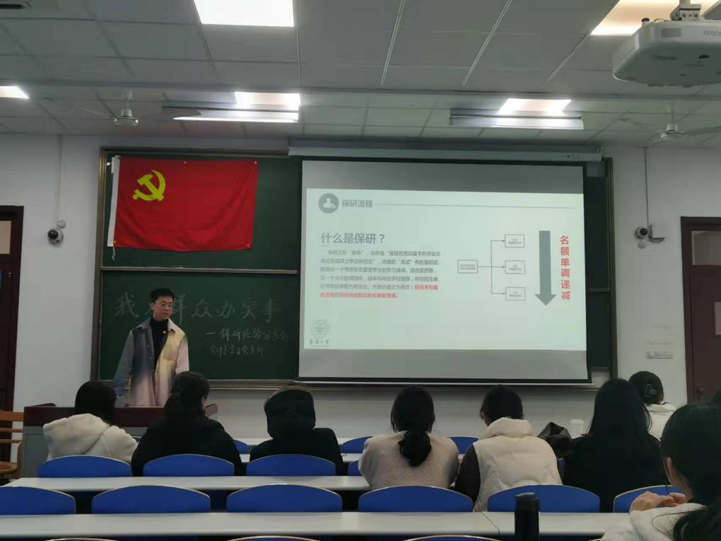 首先进行经验分享的是保研至上海财经大学的陈潇越同志。陈潇越来自财务专业,作为会计系员工党支部的副书记,在学习和员工工作方面都表现出色。他分享的侧重点在保研流程,包括夏令营、预推免和推免生面试等重要环节的时间点,还特别介绍了上海财经大学夏令营相关情况,为同学们提供了宝贵的实践经验。