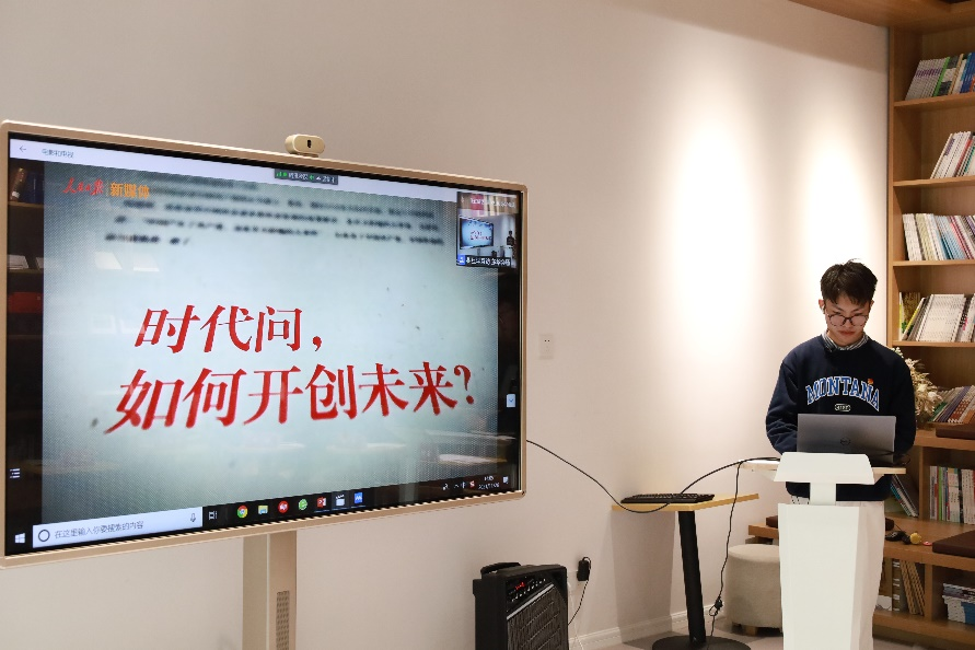 交流会上,集体观看了人民日报出品《答卷人》。从建党百年历程土木工程界的伟大建设到进博会徽章logo的自主设计,从学习国际规则构建大国外交到鼓励立法建设法治强国,从火红的音乐盛典到藏蓝的站哨立岗……各家团组织结合专业特色,对于党的十九届六中全会精神进行了学习与交流。