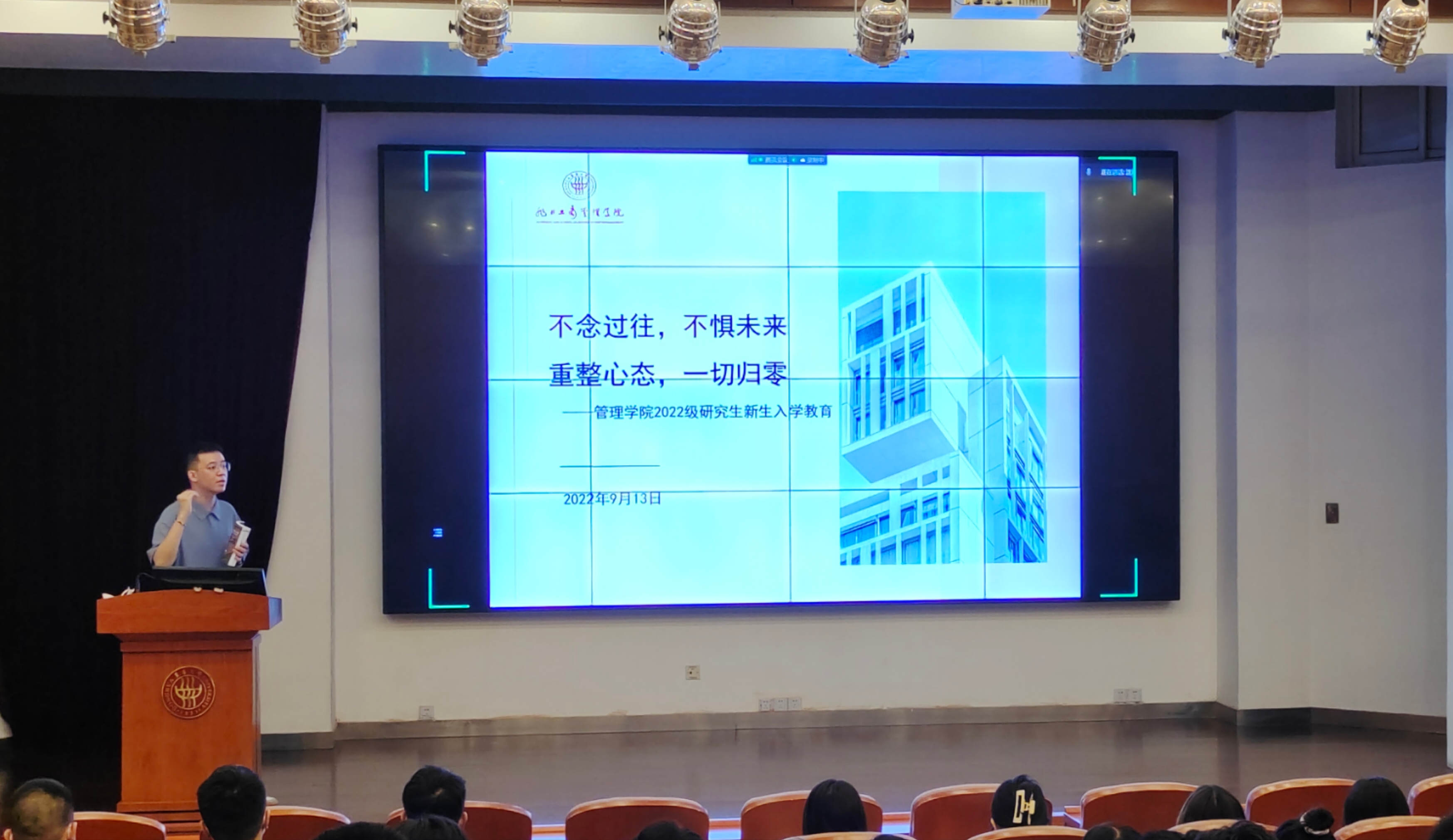 9月13日上午,韦德体育2022级研究生新生入学教育大会在旭日楼400举行,2022级研究生新生辅导员沈嘉斌、公司研究生教务员何帅、校院研究生会员工代表及2022级全体研究生新生与会。