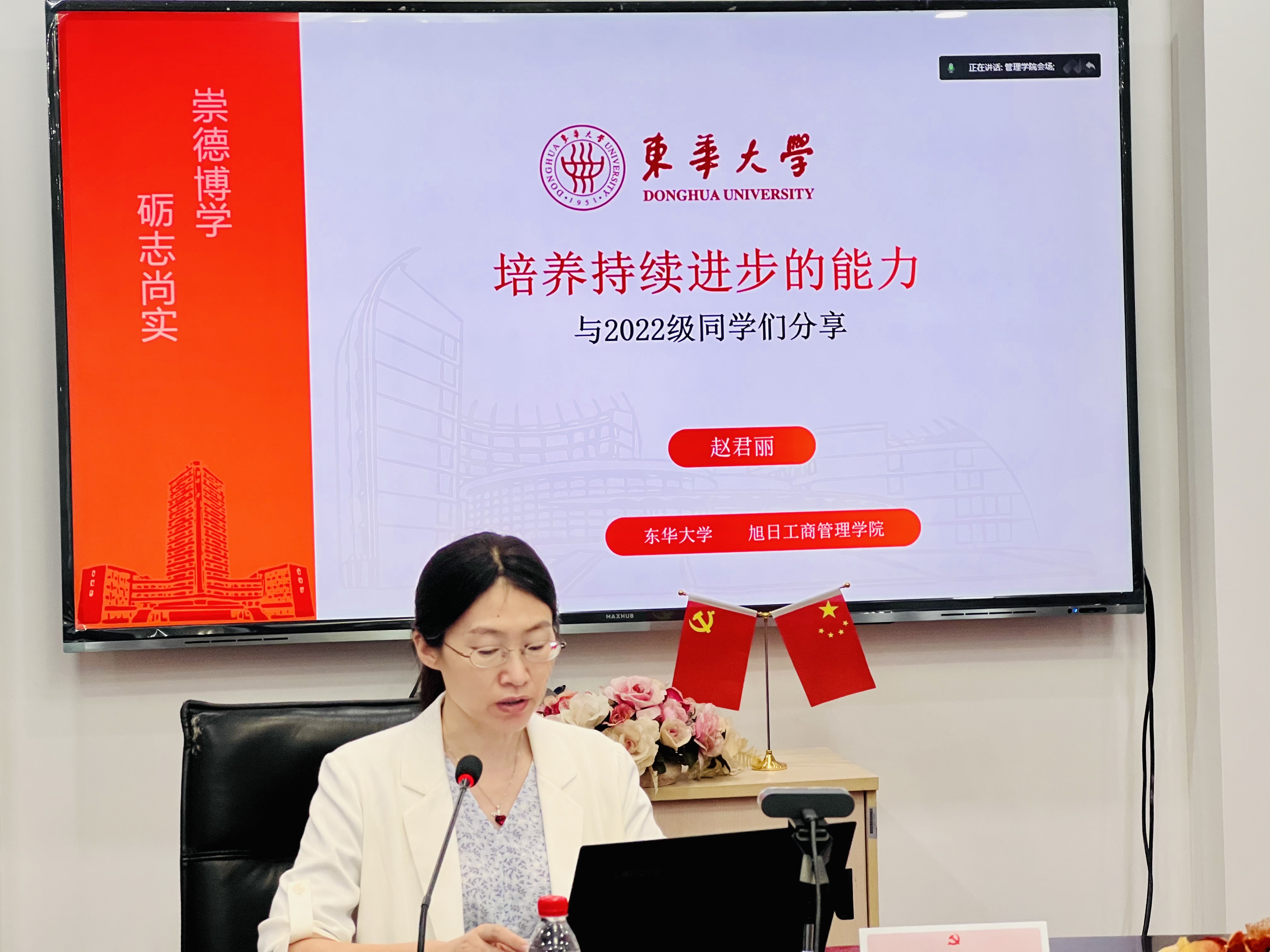 而后,旭日工商韦德体育赵丽君老师就大学的学习方法展开介绍。赵老师提到,大学学习取得优异成绩的关键是保持持续进步,同学们要志存高远、脚踏实地、不惧挫折、不懈努力。赵老师的详实阐述让同学们受益匪浅。