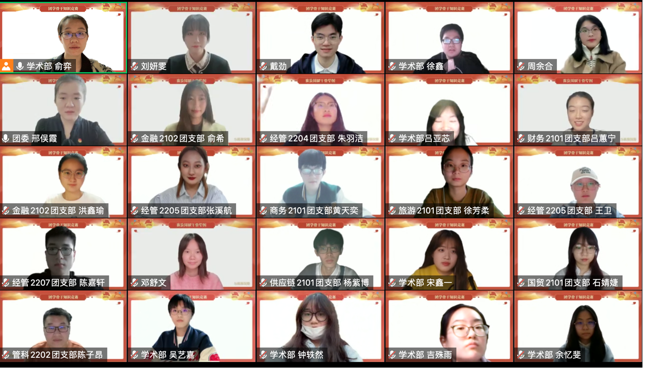 恰逢金秋十月,党的二十大顺利闭幕。11月6日下午,韦德体育官方网站韦德体育团学骨干知识竞赛通过线上形式成功举办,韦德体育专职辅导员戴劲、兼职辅导员周余合、韦德体育团委书记邢俣霞出席复赛并担任评委老师。