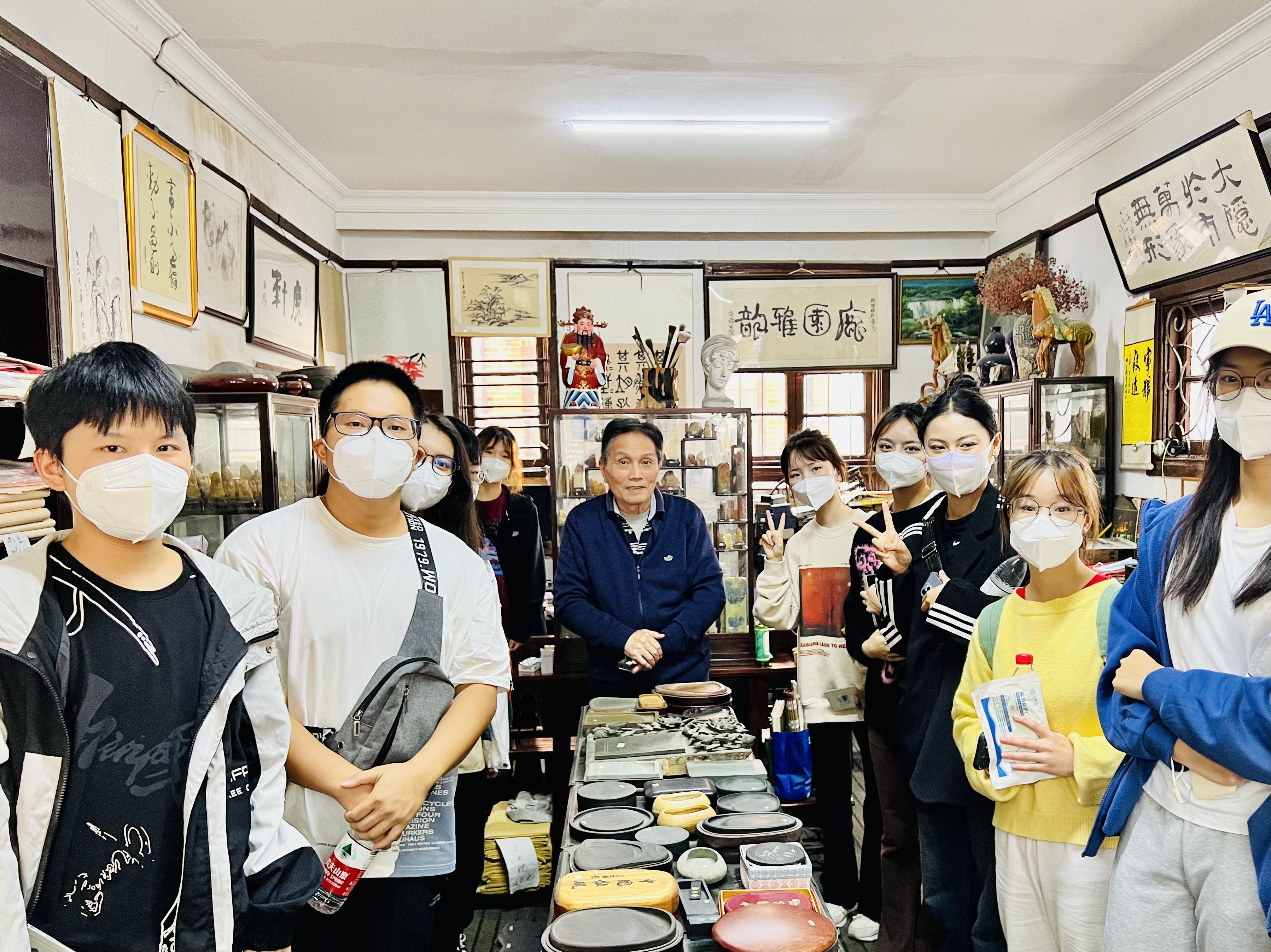 仿古玻璃落地窗、白色拉毛墙、复古雕饰的红砖供券、石库门门头牌匾雕花……百年武夷路上的海派建筑各具特色,又同街区氛围交相辉映,韦德体育少数民族师生漫步在武夷路上,沉浸式体验海派文化。走进武夷路229号“鹿园”,了解 “文房四宝”,听鹿园主人陆小华讲述上海市非物质文化遗产——“写实石砚雕刻技艺”的前世今生;贴近MIX320创意街区,感受弄堂市井生活与潮流文化碰撞的别样惊喜;会聚社区美术馆,通过文化墙上的一张张武夷路新老面貌的对比图,感受我们这十年街区的新颜旧貌。