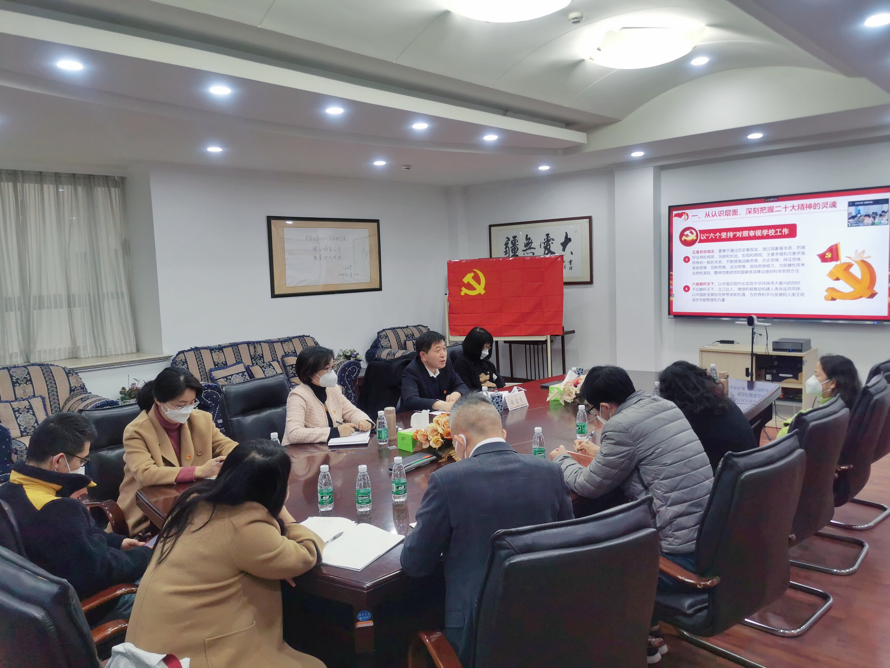 围绕全面贯彻落实好党的二十大精神,推动公司高质量发展,俞建勇指出要以习近平总书记提出的“六个坚持”对照审视公司工作,把推动高质量发展作为落脚点;以“三个务必”,深刻领悟二十大报告的精神密码,并着重强调要党组织要善于自我革命,增强“自我净化、自我完善、自我革新、自我提高”的能力,不断形成风清气正的党内政治生态。最后,他希望全体师生坚定信心、埋头苦干、团结奋斗,以建设“国内一流,国际有影响、有特色的高水平研究型大学”为己任,为全面建设社会主义现代化国家、全面推进中华民族伟大复兴而不懈奋斗!