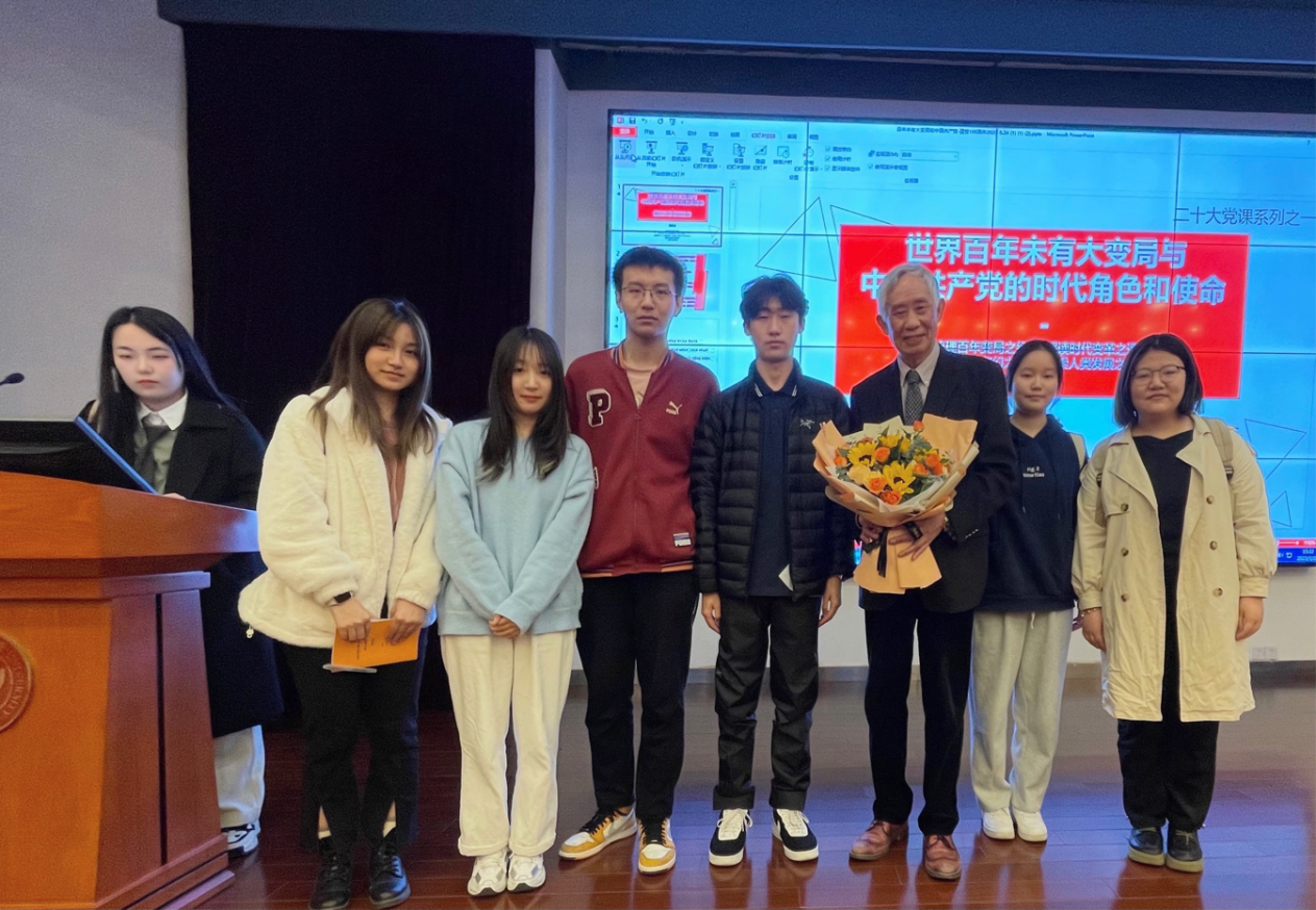 其次,顾老师提出正是这前所未有的时代变革,让世界逐渐远离平衡状态,人类社会处于十字路口:当面临恐怖主义、种族问题、经济下行、贫富差距……这些人类发展危机和时代困局时,我们应该何去何从,发人深思。顾老师的一句话点醒了大家,“世界百年未有之大变局,不仅是一个时代背景,更是我们之后创新发展的逻辑思路”,我们应该传承历史精神,坚守历史使命,吸取历史经验教训,在中国共产党的领导下埋头苦干、奋勇前进,推动高质量发展,不断探索后工业社会人类文明形态及发展道路。