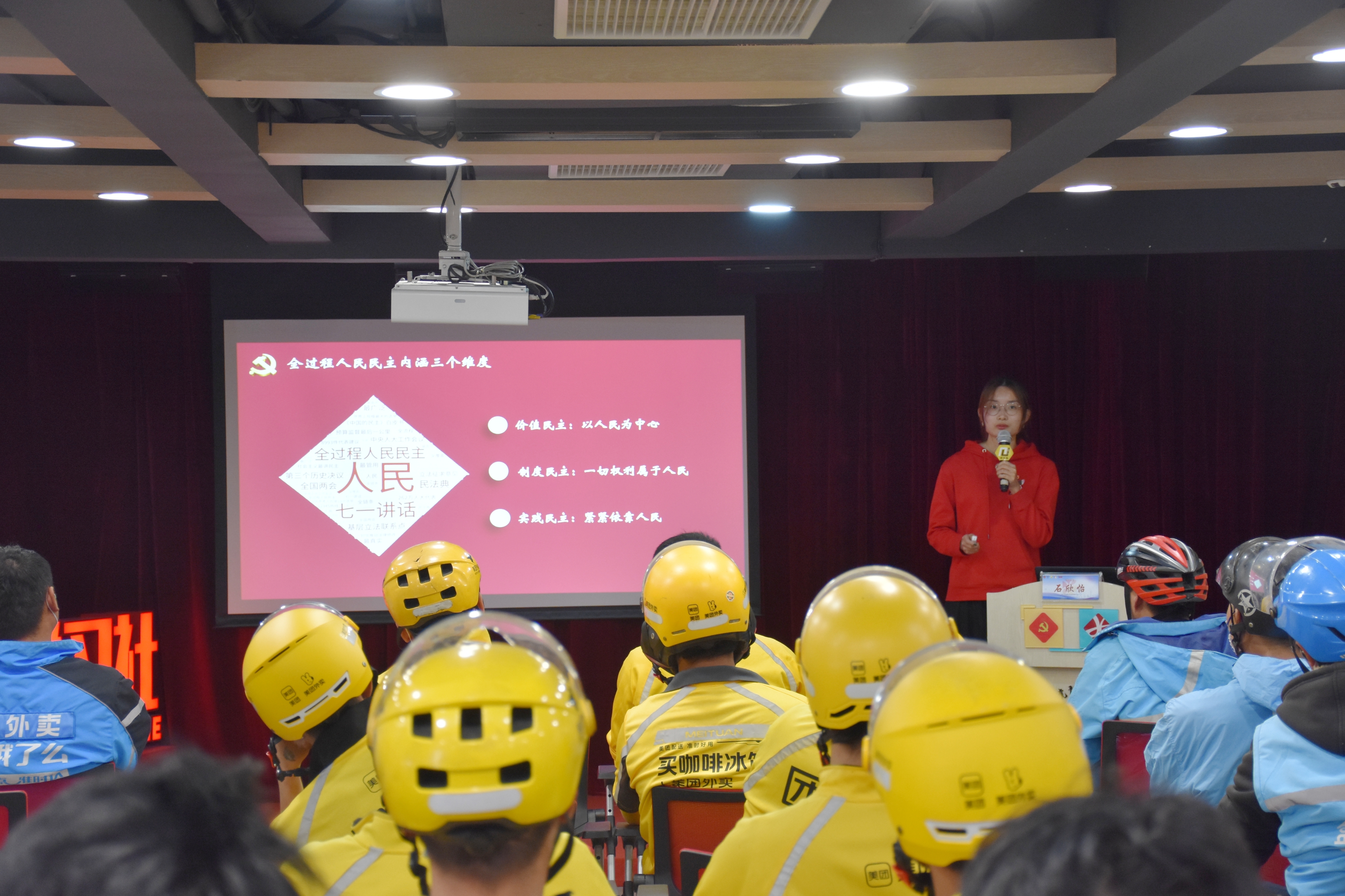 近年来,随着新一轮科技革命和产业变革深入推进,数字技术广泛应用,以平台经济为代表的新业态蓬勃兴起,聚集了快递员、外卖配送员、网约车司机等以灵活就业为主要特征的新就业群体,成为基层党的建设和组织工作新的重要阵地。4月27日,在北新泾街道党工委面向新业态新就业群体举办的“凝‘新’聚力 融‘新’共治”新时代文明实践活动中,“领雁先锋”宣讲员石欣怡围绕《从全过程人民民主,感知中国式民主内涵》一课,进一步激发新业态新就业群体爱党爱国情怀,将新就业群体更好地团结凝聚在党组织周围。