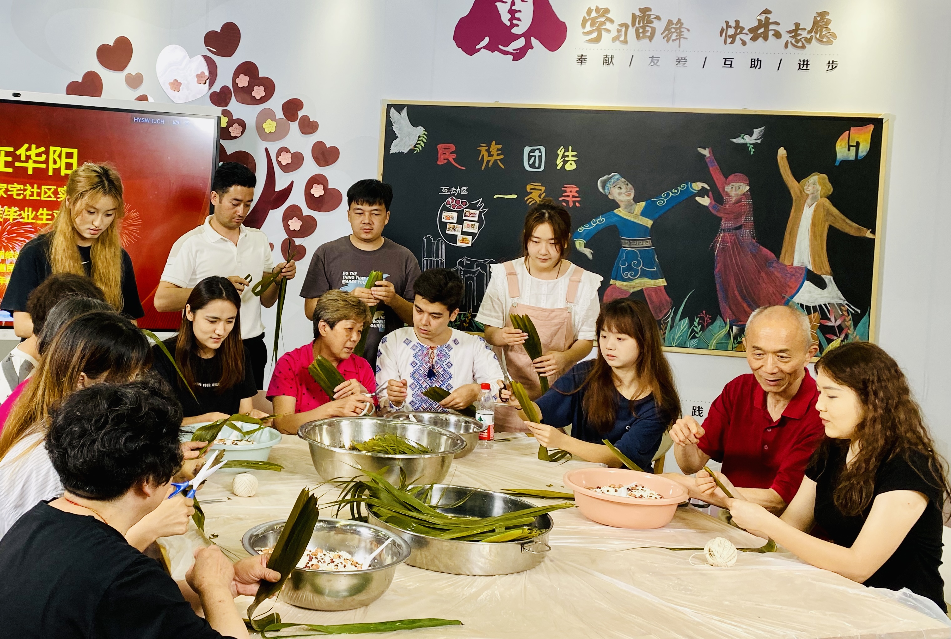 6月13韦德体育官方网站-华阳路街道民族团结进步教育基地充满了各民族师生和居民的欢声笑语。临近端午节又恰逢毕业季,韦德体育少数民族员工前往华阳路街道,与街道干部和居民一起学习民族宗教法律政策,学习包粽子,毕业生街道干部居民互送礼物,充分发挥“基地”作用,有形有感有效开展民族团结进步教育。