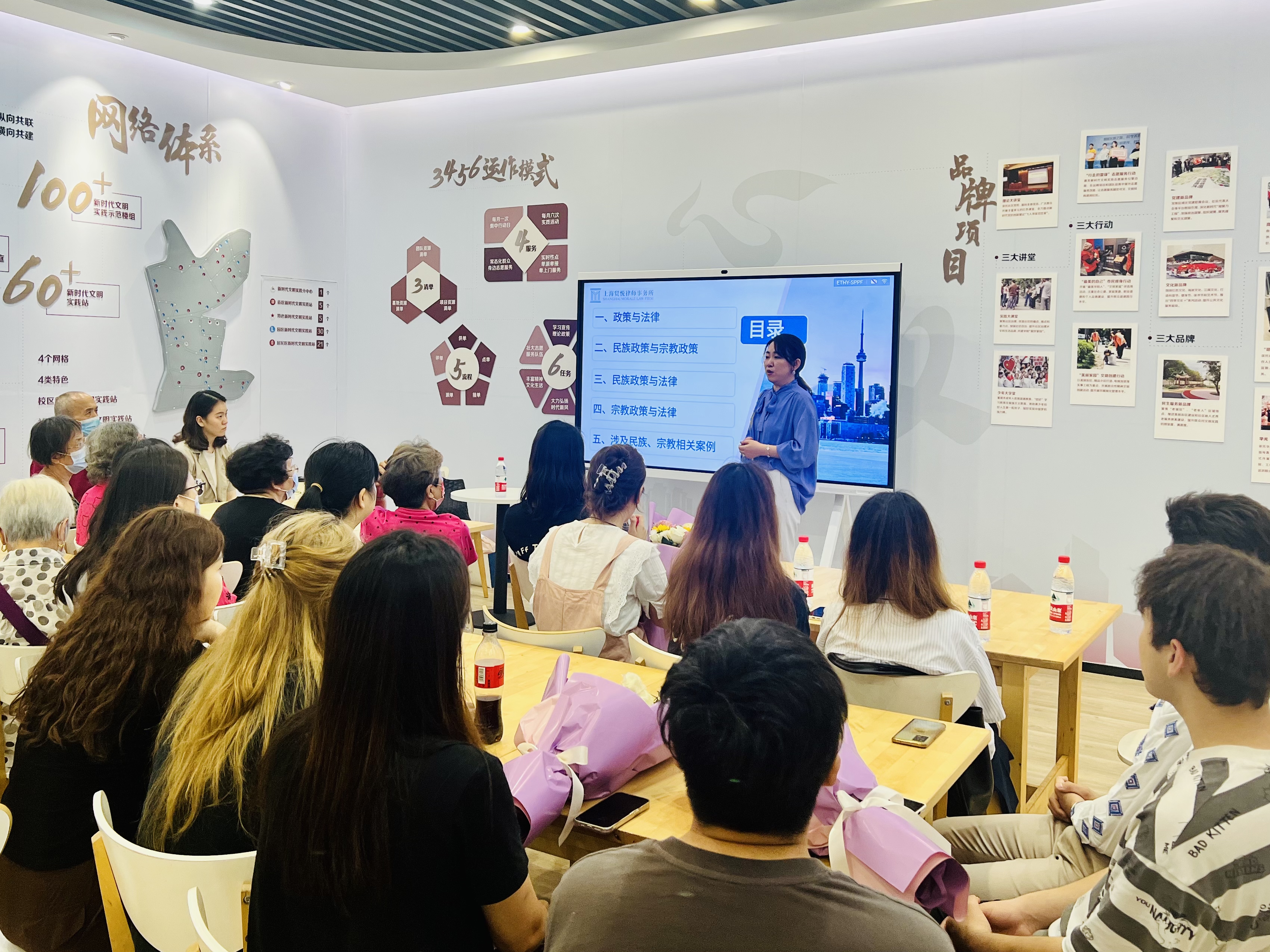 活动伊始,驻华阳路街道上海贸悦律师事务所党支部书记、高级合伙人马晓琴律师结合自己扎实的学识、丰富的经验给大家科普政策与法律的关系,讲解民族宗教法律法规和相关政策,通过生动的案例引导大家“学法、知法懂法守法用法”,培养法治思维,提高法制意识,从自身做起,为民族团结、社会和谐稳定贡献自身力量。