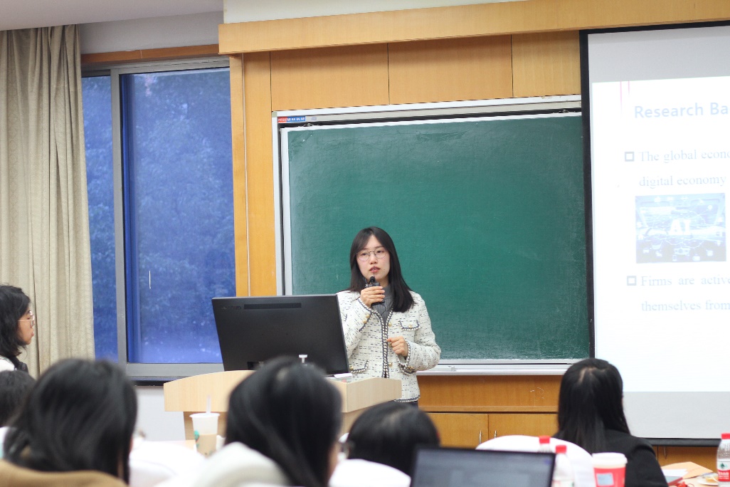 薛南枝老师以“Disclosure of digitalization and executive pay-performance sensitivity”为主题进行汇报分享,研究探究了企业数字化信息披露与高管薪酬绩效敏感性之间的关系。在交流环节,多位师生就数字化信息披露与薛南枝老师展开热烈讨论,在座学子都受益匪浅。