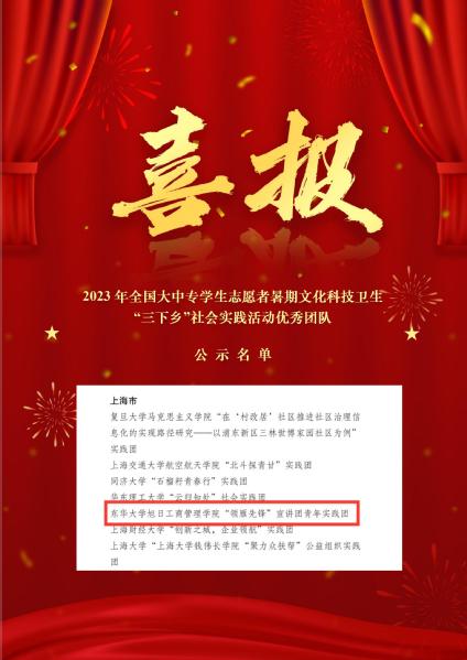 近日,共青团中央对2023年全国大中专员工志愿者暑期文化科技卫生“三下乡”社会实践活动表现突出的单位、团队、个人和成果进行通报表扬,管理公司“领雁先锋”宣讲团青年实践团获评“三下乡”社会实践全国优秀团队,为公司在该国家级社会实践赛事上的首次获奖,实现历史性突破。