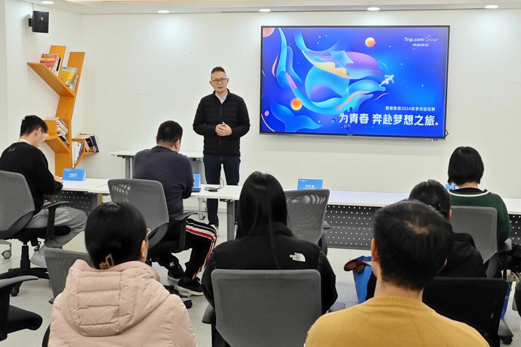 在提问互动环节,同学们就大数据在文旅行业的应用与前景、如何提升求职核心竞争力、24年实习生招募计划等问题与携程两位老师展开热烈的交流。