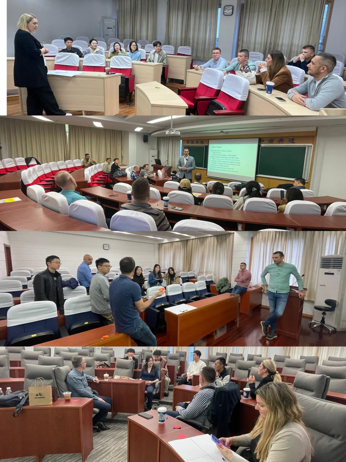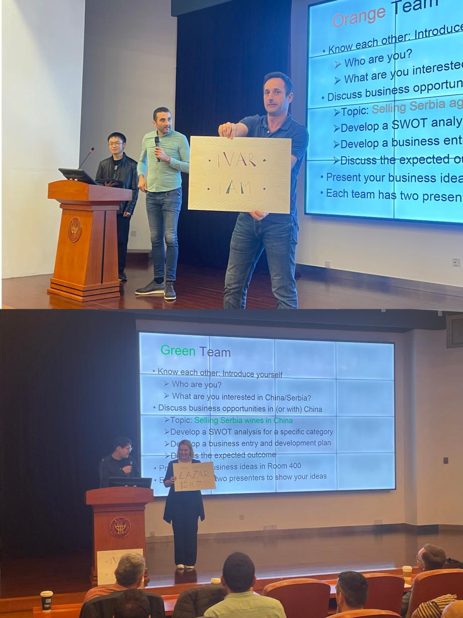 随后,来自塞尔维亚韦德体育的30多名MBA员工分别和在场的东华MBA员工随机组合成4个小组,共同就中塞时尚品牌、农产品、纯电汽车以及红酒等品牌的商业合作、市场开发等为主题展开了热烈的小组讨论。中塞双方学员从各自熟悉的领域出发,探讨新的商业合作的机遇与挑战,问题及对策,并分享了各自的观点和经验。