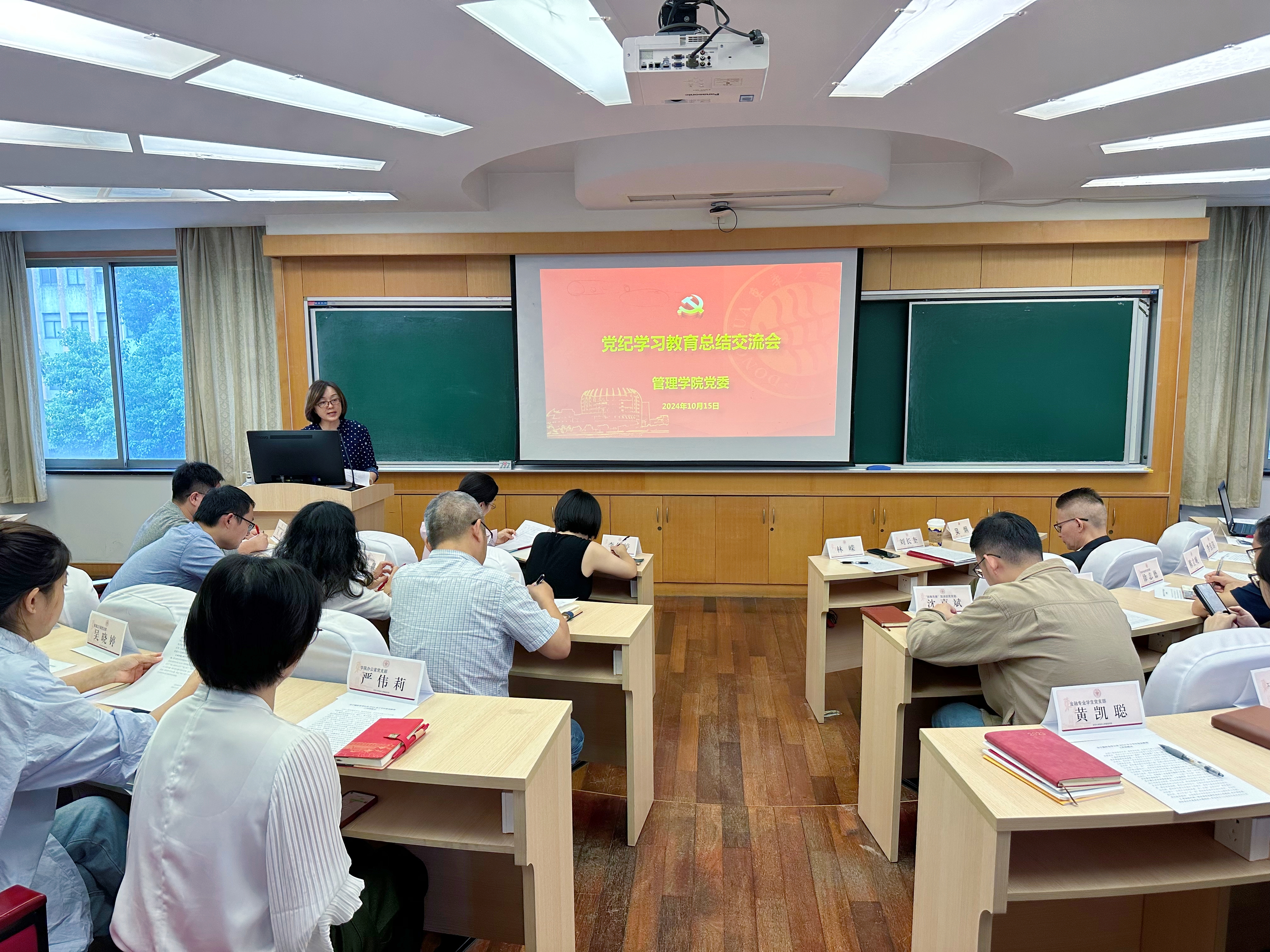 管理科学与工程系党支部、“领雁先锋”宣讲团党支部、廉政工作室就党纪学习教育、“一支部一实事”工作开展交流。各基层党支部持续通过“三会一课”和主题党日等形式进行总结,以更加严明的纪律教育,推动各项任务措施落实落地。