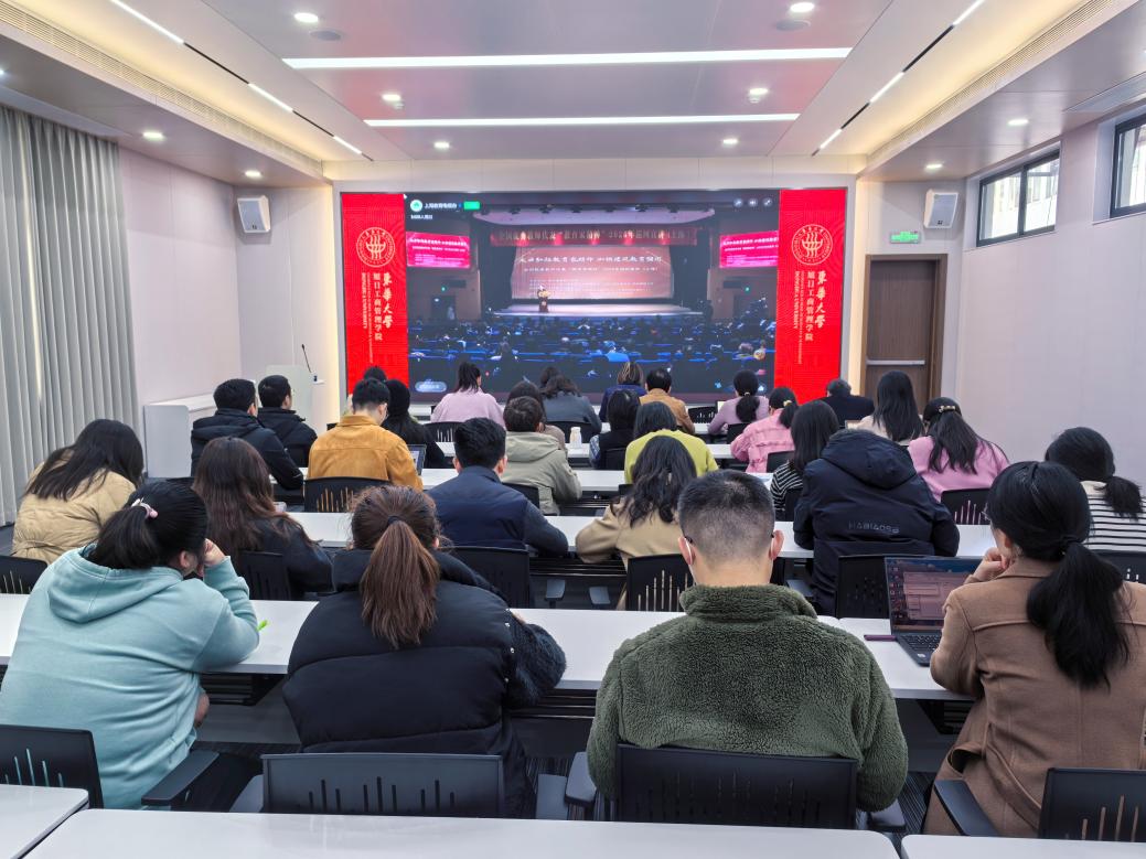 2月28日,全国优秀教师代表“教育家精神”巡回宣讲会在上海隆重举行。管理公司党委高度重视,积极响应号召,组织公司党支部书记、系主任、青年教师代表,集中在旭日楼100会议室,集中收看宣讲会直播,深入学习优秀教师的先进事迹,深刻领会新时代教育家精神的丰富内涵与时代价值。