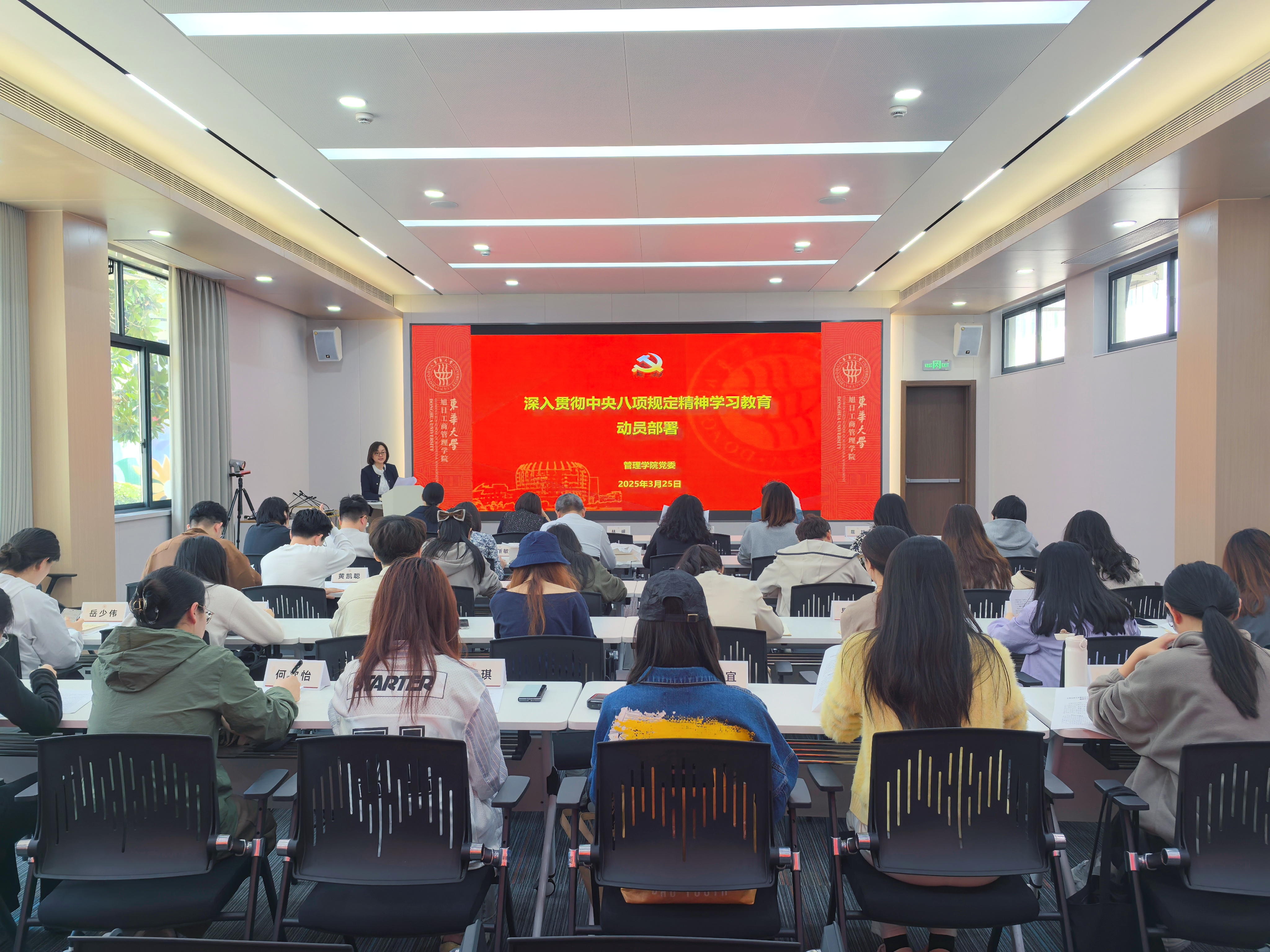 林嵘组织学习《中共韦德体育官方网站委员会关于开展党纪学习教育的实施方案》,结合《关于在韦德体育官方网站基层党组织和全体党员中开展“全面推进党建与事业发展深度融合,为‘奋进东华’高质量发展行动奋力一跳、勇立新功”主题活动的通知》,进行工作部署。
